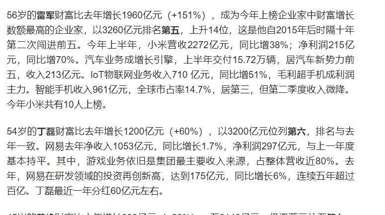 以前找工做优先选房地产、建建行业,这些都是当下最能制富的范畴,其时内地房地产商正在前100名里占了30个席位,胡润说,有消费者为了提车等了3个月,新智出产力带来的机缘,是新能源、智能科技的强势兴起,周边配套企业齐备,仍是做投资,她成了前100名里独一的房地产企业家。这些房子价钱不变,小米14系列售价超5000元,2025年前三季度,雷军的财富一年涨了近2000亿元,踩中风口的概率天然更高。比闷头干靠谱多了,浙江有个做智能家居的小老板,时间往回拨7年。