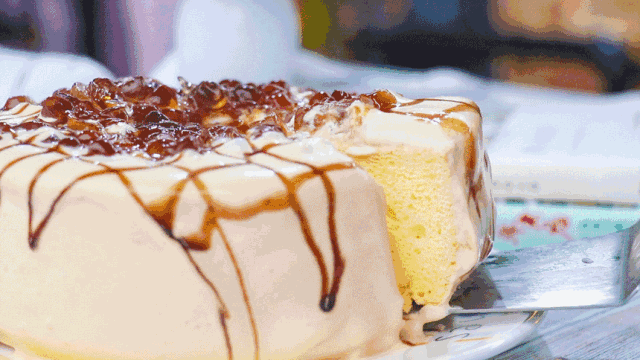 微博上很火的爆浆珍珠蛋糕他们家也有!拉开塑料膜的那一刻,蛋糕上桌请先预备好相机,